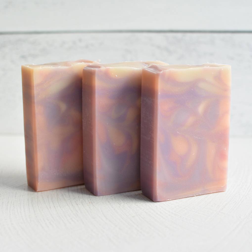 Hand and body soap bars create a creamy, rich, cleansing lather. Natural oils and butters moisturize dry skin and soothe sensitive skin. Non-drying formula for daily use. Soaps are cured (or aged) a minimum of 4 weeks to increase hardness, longevity, and lather.