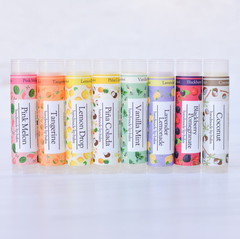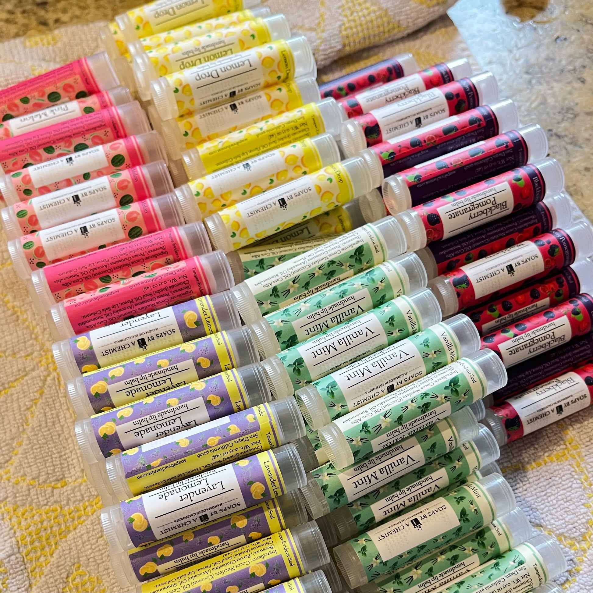 NEW LABELS (colorful ones) are now on all 8 of the best selling lip balms. Limited edition scents will still have the black and clear labels.