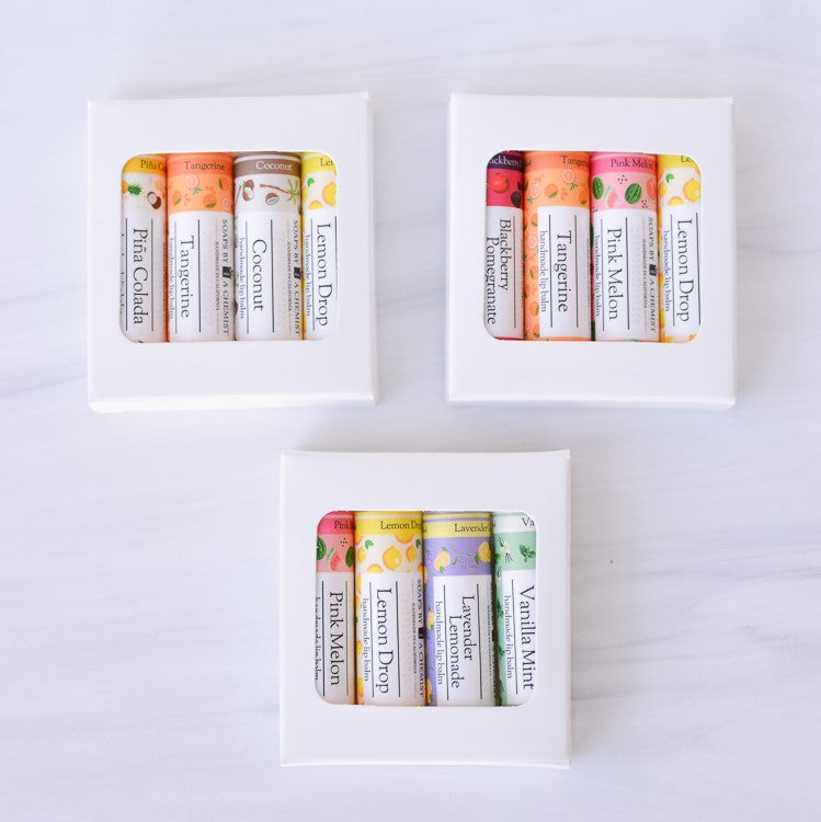 FAQ: Will these lip balms color my lips? No, the tiny bit of micas are added simply to help differentiate the lip balms from one another and to add a bit of flare to your lip balm. No residual color will be visible on your lips.